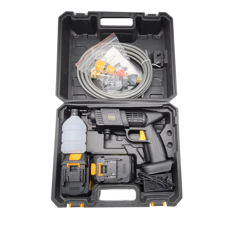 کیف حمل، گان بلند، شلنگ ورودی و یک عدد اتصالات ورودی و فیلتر و دو عدد سری تنظیم پهنای پخش آب (تبدیل قرمز و سفید)