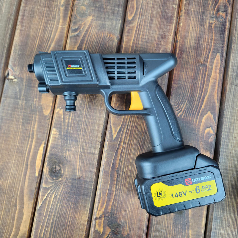 کارواش شارژی اینتیمکس موتوری با قدرت معادل 3.5 مگا پاسکال دارد. دارای دو عدد باتری 148 ولت است. مخزن پاشش کف (مواد شوینده) دارد. قابلیت پاشش سم و انواع سیالات را دارد. قابلیت مکش و عدم نیاز به اتصال مستقیم به شلنگ آب را دارد. دارای کیف حمل است و گان بلند، شلنگ ورودی و یک عدد اتصالات ورودی و فیلتر و دو عدد سری تنظیم پهنای پخش آب (تبدیل قرمز و سفید) نیز همراه آن است. سریهای مختلف جهت پاشش خطی و نقطهای آب دارد. این دستگاه علاوه بر امور شستشو، برای سم پاشی هم می تواند مورد استفاده قرار بگیرد