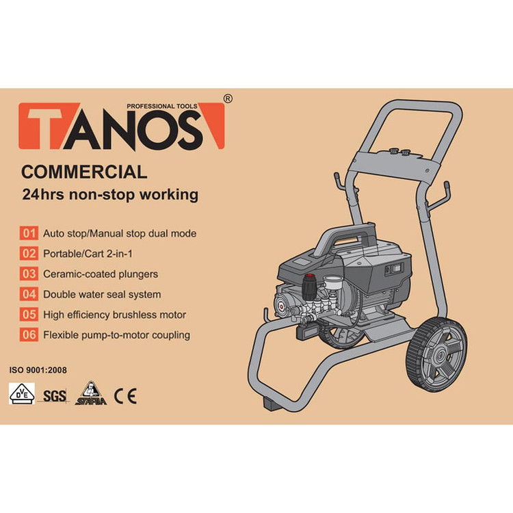 دارای تفنگ حرفه ای استینلس استیل با اتصالات برنجی می باشد دارای دو نازل با زاویه پاشش مختلف می باشد مجهز به چرخ های بزرگ جهت سهولت در جا به جایی می باشد دارای نازل های قابل تعویض به وسیله کوپلینگ تمام برنج می باشد مجهز به گیج نشانگر فشار برای کنترل فشار آب ورودی و خروجی می باشد دارای فیلتر بزرگ جهت استفاده در هنگام مکش از مخزن می باشد دارای شاسی سبک و مقاوم می باشد دارای هد تمام برنجی با پوشش سرامیکی داخلی می باشد دارای شلنگ 10 متری فشار قوی با قابلیت استفاده از آب گرم می باشد
