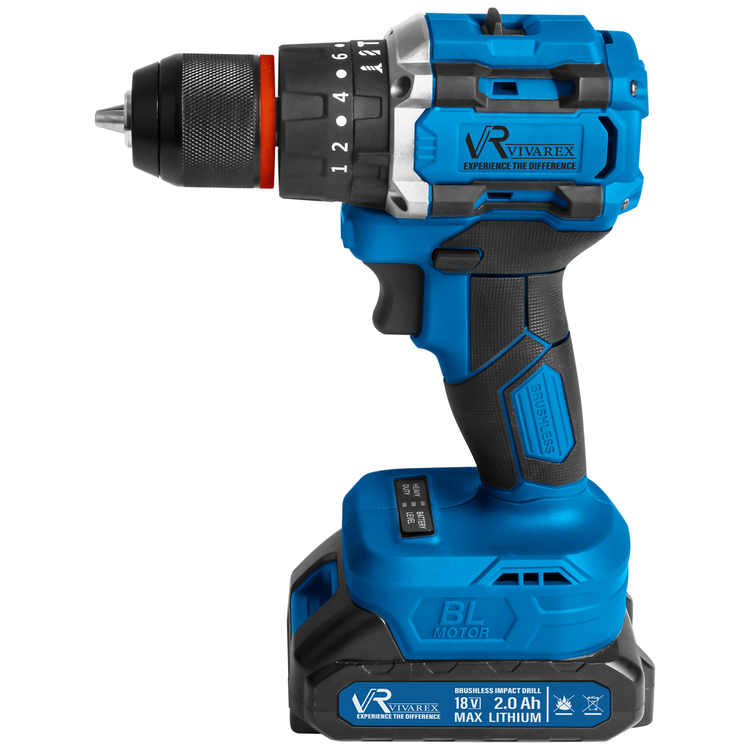 دارای موتور پر قدرت براشلس دارای دکمه چپ گرد و راستگرد دارای کیف BMC و پایه فست شارژ دارای کلید دو دور سرعتی و قدرتی