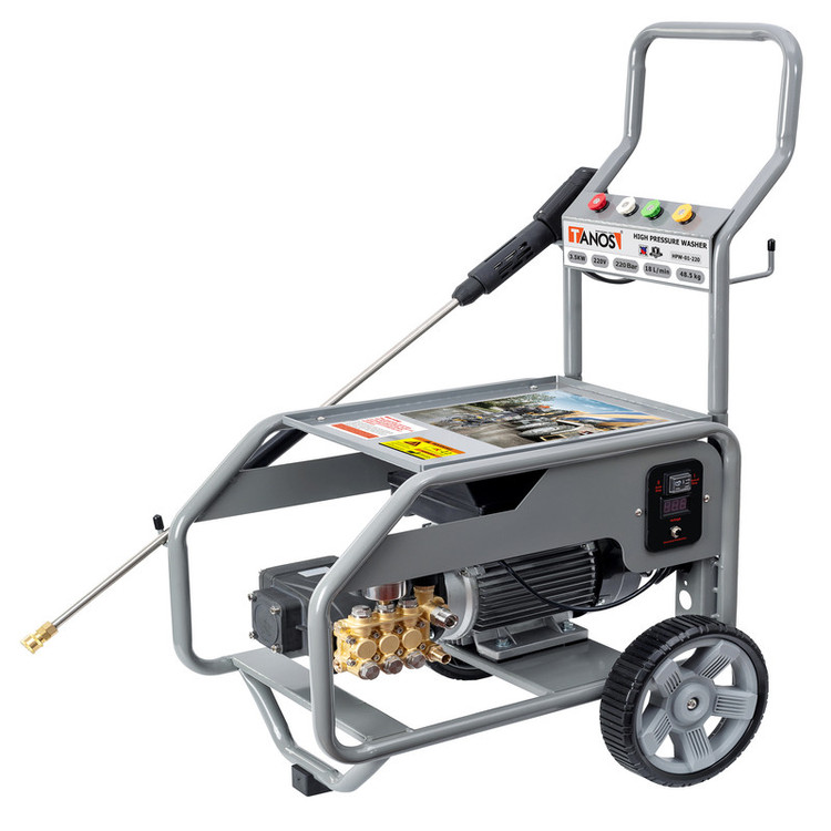 کارواش 220 بار تانوس مدل HPW-01-220 تابلو برق ورودی دارد و با برق شهری 220 ولت کار میکند.این دستگاه فشار آب 220 بار را در اختیار شما قرار میدهد و دبی آب آن نیز 18 لیتر بر دقیقه است که قابلیت کار با آب تا دمای 80 درجه سانتیگراد را دارد.موتور القایی این دستگاه توان 3500 وات است. از اقلام همراه این محصول میتوان به لانس تمام استیل،اتصالات برنجی و نازل های 0-15-25 و 40 درجه، مخزن شوینده با قابلیت تنظیم سه حالته،شلنگ و فیلتر اشاره نمود.جهت محافظت از دستگاه حین حمل و نقل از یک پالت چوبی به همراه کارتن مقاوم استفاده شده است.