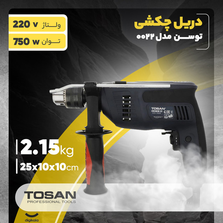 انواع دریلها را از نظر ساختار میتوان به دریلهای ستونی و قابل حمل تقسیم کرد. دریلهای تخریب هم در هر دو گونهی برقی و شارژی قابل تهیه هستند؛ پیستون واقعی درنظر گرفته شده برای این دریلها در مقایسه با دریلهای چکشی معمولی قدرت ضربه و تخریب بیشتری دارند. بارزترین تفاوت میان دریلهای تخریب و دریلهای چکشی هم توانایی ضربه زدن با نوک ابزار نوع پیستونی، آنهم بدون چرخش ابزار است؛ در حالی که در نوع معمولی یا چکشی چنین امکانی فراهم نیست. انواع دریلهای شارژی امروزی معمولا از باتریهای نیکل-کادمیوم یا لیتیومی استفاده میکنند. حتی انواع چکشی این دریلهای شارژی هم در ابعاد بسیار کوچک وجود دارند. دریل چکشی توسن مدل 0022D نیروی خود را از طریق برق شهری تامین میکند. بیشینه سرعت دوران این دریل 2800 دور بر دقیقه است. این دریل توانایی چرخش در دو جهت را دارد. با استفاده از این دریل قادر خواهید بود سوراخهایی حداکثر با قطر 13 میلیمتر در فلز و 16 میلیمتر در سیمان یا مصالح مشابه و 30 میلیمتر در چوب را ایجاد کنید. این دریل با داشتن توان 750 واتی دریلی مناسب برای مصارف خانگی و تجاری است.