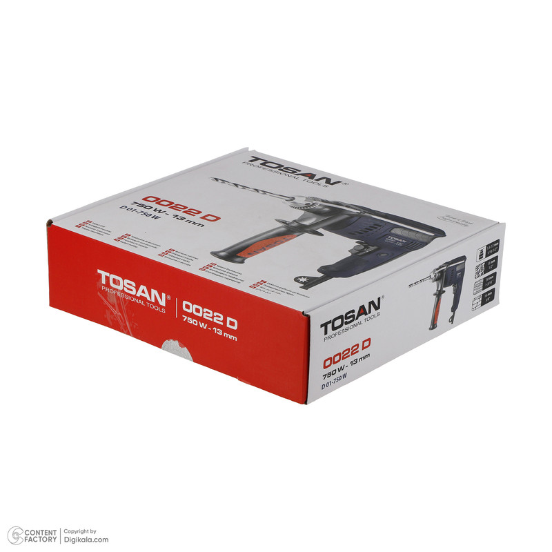 انواع دریلها را از نظر ساختار میتوان به دریلهای ستونی و قابل حمل تقسیم کرد. دریلهای تخریب هم در هر دو گونهی برقی و شارژی قابل تهیه هستند؛ پیستون واقعی درنظر گرفته شده برای این دریلها در مقایسه با دریلهای چکشی معمولی قدرت ضربه و تخریب بیشتری دارند. بارزترین تفاوت میان دریلهای تخریب و دریلهای چکشی هم توانایی ضربه زدن با نوک ابزار نوع پیستونی، آنهم بدون چرخش ابزار است؛ در حالی که در نوع معمولی یا چکشی چنین امکانی فراهم نیست. انواع دریلهای شارژی امروزی معمولا از باتریهای نیکل-کادمیوم یا لیتیومی استفاده میکنند. حتی انواع چکشی این دریلهای شارژی هم در ابعاد بسیار کوچک وجود دارند. دریل چکشی توسن مدل 0022D نیروی خود را از طریق برق شهری تامین میکند. بیشینه سرعت دوران این دریل 2800 دور بر دقیقه است. این دریل توانایی چرخش در دو جهت را دارد. با استفاده از این دریل قادر خواهید بود سوراخهایی حداکثر با قطر 13 میلیمتر در فلز و 16 میلیمتر در سیمان یا مصالح مشابه و 30 میلیمتر در چوب را ایجاد کنید. این دریل با داشتن توان 750 واتی دریلی مناسب برای مصارف خانگی و تجاری است.