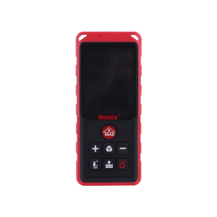 متر لیزری رونیکس مدل RH-9351 یک متر با قابلیت های عملکرد اندازه گیری به تمامی واحد های اندازه گیری بر اساس متر، فوت و اینچ و قابلیت تبدیل تمامی واحد های اندازه گیری به یکدیگر نیز می باشد. این متر مجهز به صفحه کلید روان با عمر و کارکرد مستمر است. این دستگاه دارای قابلیت اندازه گیری مستمر و دلخواه جهت محاسبه جابجایی را دارد همچنین انجام عملیات کاربردی تکمیلی اندازه گیری ماند مشخص کردن حد اقل و حداکثر، قابلیت جمع و تفریق محاسبه ی مساحت، اندازه گیری حجم و محاسبه ارتفاع با کمک فرمول فیثاغورث است. سرعت اندازه گیری و دقت این محصول بسیار بالا بوده که باعث ایجاد سهولت در حین کار می شود. این دستگاه با منبع تغذیه باطری کار می کند و وزن آن با باطری به 92 گرم می رسد و دارای استاندارد های لازم اروپا و شرکت رونیکس می باشد . متر های لیزری در اندازه گیری زمین ها ، ساخت و ساز های شهری، دکوراسیون، نصب و … مورد استفاده قرار می گیرد. این متر ها با توانایی هایی که دارند نظیر اندازه گیری دقیق و سریع و با سرعت انتقال و سهولت کاربری همچنین اندازه گیری شیب، طول، حجم و ارتفاع می توانند تاثیر بسزایی در بهبود و سرعت عملکرد پروژه های مختلف داشته باشند. این محصول در محاسبات عمرانی، دکوراسیون و نصب کارایی بسزایی دارد. جهت جلوگیری از آسیب های احتمالی یک کیف برزنتی طراحی شده و همچنین یک بند آویز برای ایمنی دستگاه هنگام استفاده همراه با آن عرضه می شود.