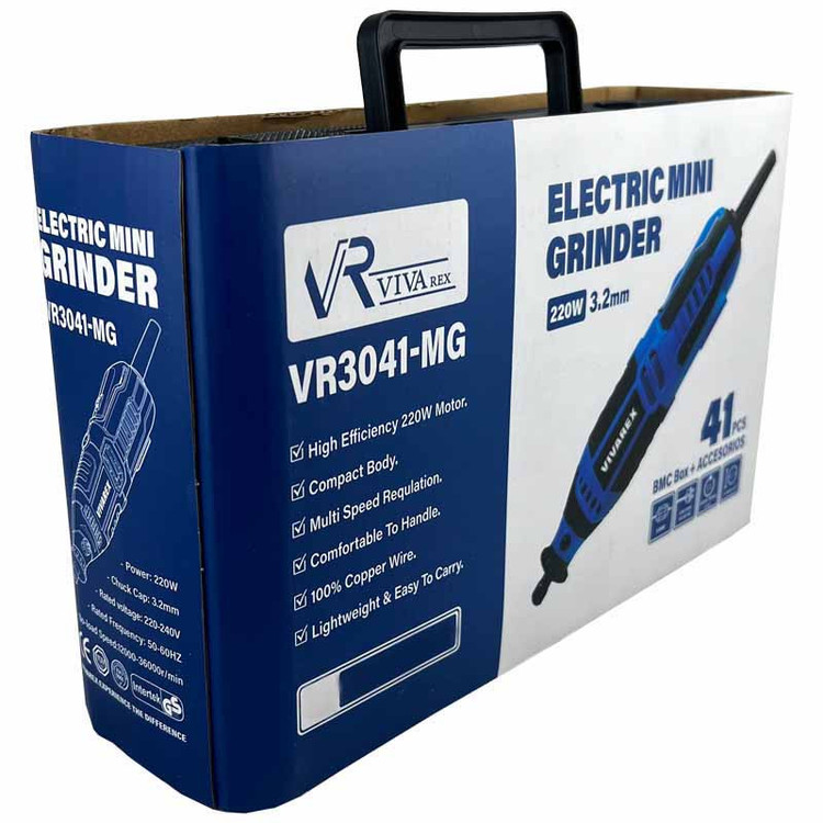 فرز مینیاتوری ویوارکس مدل VR3041-MG مجهز به موتوری با توان 220 وات است که با ولتاژ 220 – 240 ولت و فرکانس 50 – 60 هرتز کار می کند. سرعت این فرز در حالت آزاد 12000 تا 36000 دور در دقیقه و سایز کولت این محصول 3.2 میلی متر می باشد. فرز مینیاتوری ویوارکس مدل VR3041-MG دارای دیمر 6 حالته نیز می باشد که با تنظیم سرعت به کارایی محصول کمک شایانی می کند. طراحی این محصول ارگونومیک بوده و برای کارهای طولانی بسیار مناسب است. در بدنه این محصول از پلاستیک استفاده شده که علاوه بر وزن کمتر از لغزش جلوگیری می کند و انحنای تعبیه شده در بدنه محصول به گردش هوا و کارکرد بهتر موتور محصول کمک می کند. این فرز برای کار روی مواد مختلف مانند چوب، فلز، پلاستیک، شیشه، سرامیک، جواهرات و حتی پوست مناسب است. از این ابزار میتوان در پروژههای چوبکاری، مدلسازی، تعمیرات الکترونیکی، جواهرسازی، هنرهای دستی و حتی مراقبت از خانه استفاده کرد. طراحی ارگونومیک و وزن سبک، استفاده از این فرز را برای همه افراد راحت میکند. این دستگاه با استفاده از مواد مرغوب ساخته شده است و دوام بالایی دارد. این مدل نسبت به فرزهای مشابه، صدای کمتری تولید میکند و ارتعاش آن نیز کم است. این ویژگی برای محیطهایی که نیاز به سکوت دارند، مناسب است.