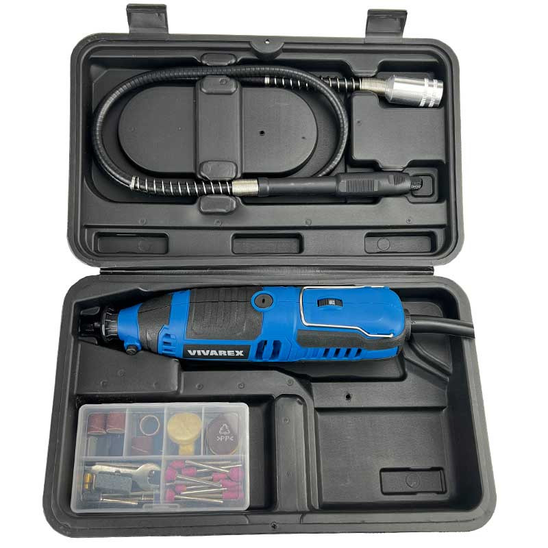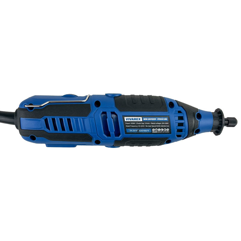 فرز مینیاتوری ویوارکس مدل VR3041-MG مجهز به موتوری با توان 220 وات است که با ولتاژ 220 – 240 ولت و فرکانس 50 – 60 هرتز کار می کند. سرعت این فرز در حالت آزاد 12000 تا 36000 دور در دقیقه و سایز کولت این محصول 3.2 میلی متر می باشد. فرز مینیاتوری ویوارکس مدل VR3041-MG دارای دیمر 6 حالته نیز می باشد که با تنظیم سرعت به کارایی محصول کمک شایانی می کند. طراحی این محصول ارگونومیک بوده و برای کارهای طولانی بسیار مناسب است. در بدنه این محصول از پلاستیک استفاده شده که علاوه بر وزن کمتر از لغزش جلوگیری می کند و انحنای تعبیه شده در بدنه محصول به گردش هوا و کارکرد بهتر موتور محصول کمک می کند. این فرز برای کار روی مواد مختلف مانند چوب، فلز، پلاستیک، شیشه، سرامیک، جواهرات و حتی پوست مناسب است. از این ابزار میتوان در پروژههای چوبکاری، مدلسازی، تعمیرات الکترونیکی، جواهرسازی، هنرهای دستی و حتی مراقبت از خانه استفاده کرد. طراحی ارگونومیک و وزن سبک، استفاده از این فرز را برای همه افراد راحت میکند. این دستگاه با استفاده از مواد مرغوب ساخته شده است و دوام بالایی دارد. این مدل نسبت به فرزهای مشابه، صدای کمتری تولید میکند و ارتعاش آن نیز کم است. این ویژگی برای محیطهایی که نیاز به سکوت دارند، مناسب است.
