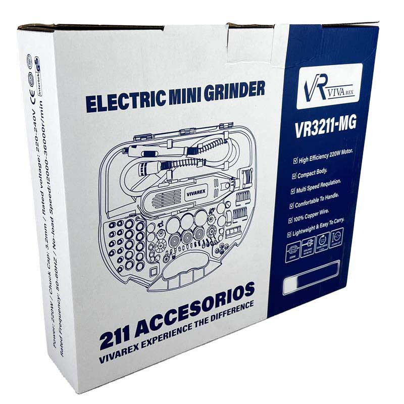 فرز مینیاتوری ویوارکس مدل VR3211-MG مجهز به موتوری با توان 220 وات است که با ولتاژ 220 – 240 ولت و فرکانس 50 – 60 هرتز کار می کند. سرعت این فرز در حالت آزاد 12000 تا 36000 دور در دقیقه و سایز کولت این محصول 3.2 میلی متر می باشد. فرز مینیاتوری ویوارکس مدل VR3211-MG دارای دیمر 6 حالته نیز می باشد که با تنظیم سرعت به کارایی محصول کمک شایانی می کند. طراحی این محصول ارگونومیک بوده و برای کارهای طولانی بسیار مناسب است. در بدنه این محصول از پلاستیک استفاده شده که علاوه بر وزن کمتر از لغزش جلوگیری می کند و انحنای تعبیه شده در بدنه محصول به گردش هوا و کارکرد بهتر موتور محصول کمک می کند. این فرز برای کار روی مواد مختلف مانند چوب، فلز، پلاستیک، شیشه، سرامیک، جواهرات و حتی پوست مناسب است. از این ابزار میتوان در پروژههای چوبکاری، مدلسازی، تعمیرات الکترونیکی، جواهرسازی، هنرهای دستی و حتی مراقبت از خانه استفاده کرد. طراحی ارگونومیک و وزن سبک، استفاده از این فرز را برای همه افراد راحت میکند. این دستگاه با استفاده از مواد مرغوب ساخته شده است و دوام بالایی دارد. این مدل نسبت به فرزهای مشابه، صدای کمتری تولید میکند و ارتعاش آن نیز کم است. این ویژگی برای محیطهایی که نیاز به سکوت دارند، مناسب است.