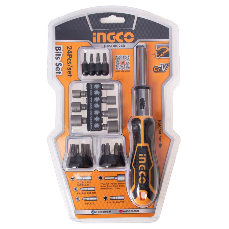 مجموعه 24 عددی پیچ گوشتی و سری پیچ گوشتی جغجغه ای اینکو مدل HKSDB024 ساخت برند امریکایی و مونتاژ شده در کشور چین است. این مجموعه دارای سری بکس و پیچ گوشتی قابل تعویض از جنس آلیاژ کروم وانادیوم است که کار شما را تسهیل و آسان مینماید و از ویژگی های منحصر به فرد این ست پیچ گوشتی اینکو میتوان به سریهای فولادی آن اشاره کرد که مقاومت و استحکام بالایی در برابر خوردگی، سایش و زنگزدگی دارد و دوام و طول عمر بالایی را در شرایط کاری فراهم می آورد.