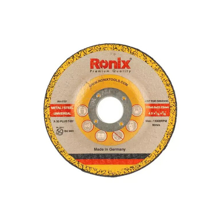 برای سابیدن یا اصطلاحا ساب زنی سطوح آهنی و فلزی به سنگ ساب نیاز خواهید داشت. سنگ ساب به نسبت دیگر سنگ ها و صفحات، از ضخامت بیشتری برخوردار بوده تا بتواند ساییدن طولانی مدت و فرسایشی سطوح مقاومی همچون فولاد را تحمل کند. این ویژگی به طول عمر بیشتر سنگ و کیفیت کار، کمک فراوانی میکند. سنگ ساب آهن 22 × 6 × 115 میلی متری آلمانی رونیکس تحت عنوان کد محصول RH-3727 یکی از نمونههای با کیفیت و مطرح این نوع از سنگ ها است. این صفحه ساب قطری معادل 115 میلیمتر دارد و قطر محور آن نیز به حدود 22.2 میلیمتر میرسد. ضخامت این صفحه 6 میلیمتر است تا از پهنای کافی برای کارهای مداوم برخوردار باشد. مشخصات این مدل سنگ ساب آهن رونیکس بر روی آن تعریف شده است؛ به این معنی که این صفحه از دانههای اکسید آلومینیوم (A) ساخته شده است و اندازه این دانهها، به نسبت، درشت محسوب میشود؛ ولی درجه سختی آنها متوسط است. در نهایت نیز باید اضافه کرد که این دانهها با پیوند رزینی تقویت شده (BF) در کنار یکدیگر قرار گرفتهاند. درشتی دانهها و سختی متوسط آنها، این امکان را به این صفحه ساب فلز میدهد که بتواند سطح کار را به صورت یکدست و یکنواخت ساب بزند و سطحی صاف و بی نقص در اختیار کاربر قرار بدهد. این صفحه ساب رونیکس میتواند تا حداکثر سرعت 80 متر بر ثانیه و تا گردش 13300 دور در دقیقه کار کند. ساختار فیبری آن نیز، به افزایش طول عمر و دوام بیشتر سطح محصول، کمک فراوانی کرده است. این محصول تحت استاندارد اروپایی EN 12413 و سیستم کیفیت و ایمنی SQ تولیده شده، 365 گرم وزن دارد و میتوان از آن در فعالیت های آهنگری، ساختمانی و مکانیکی استفاده کرد.