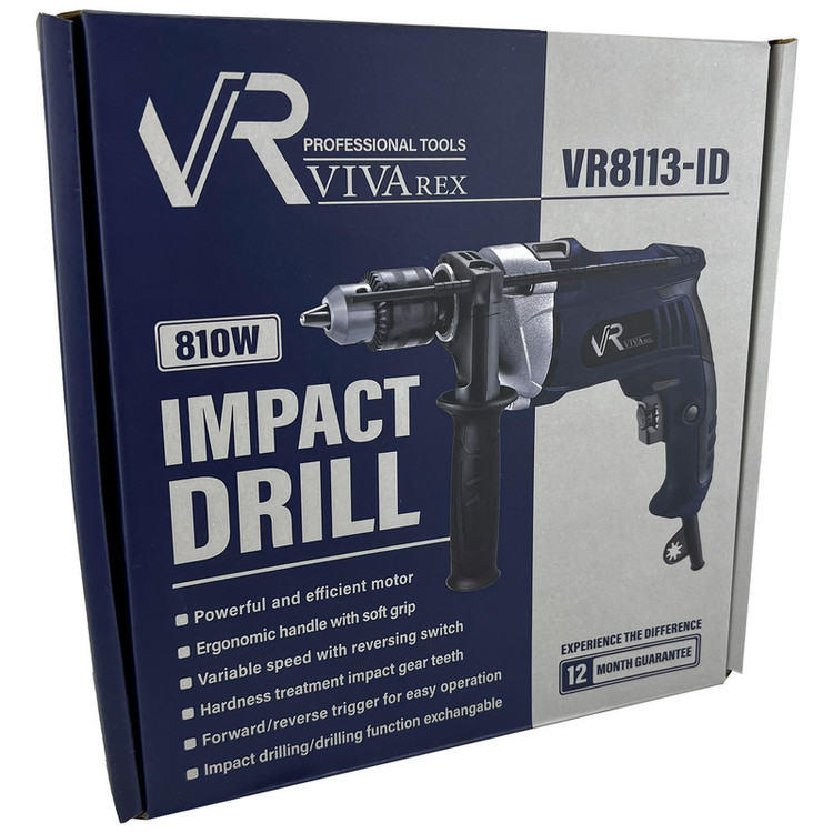 ویوارکس برندی پر آوازه در بین ابزارالات برقی و شارژی دریل چکشی فول آپشن مدل VR8113-ID را معرفی کرده. با داشتن یک موتور قدرتمند 810 واتی قادر است تا به حداکثر سرعت گردش آزادی برابر با 3000 دور بر دقیقه دست پیدا کند.سیم پیچ موتور تماما از مس درجه یک و دیمر تعبیه شده برای این محصول به کاربران این امکان را میدهد تا با توجه به نیاز خود سرعت این دریل را تنظیم نمایند. همچنین کلید تغییر جهت چرخش چپگرد-راستگرد تعبیه شده برای این محصول، این دریل را به ابزاری چند منظوره (استفاده برای پیچ بستن) تبدیل مینماید. در هر زمان که کاربران نیاز به استفاده از این دریل برای تخریب بتن و یا حفاری در آن را داشته باشند، میتوانند براحتی(توسط کلید حالت چکشی) حالت کارکرد دریل را با یک کلید تغییر دهند. در طراحی و ساخت بدنه دستگاه با بهره گیری از متریال اولیه با کیفیت و بهره گیری از ارگونومی بالا ، کاربران قادر هستند تا بدون هیچگونه احساس خستگی، طی ساعات طولانی به کار بپردازند. سه نظام این محصول از نوع 13 میلیمتری فلزی آچاری بوده که تعویض مته را بیش از پیش برای کاربران آسوده کرده و بین تمامی هم رده های خود بهترین گزینه برای خرید در سایت دیجی کالا میباشد.