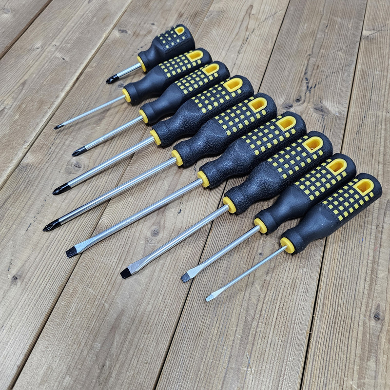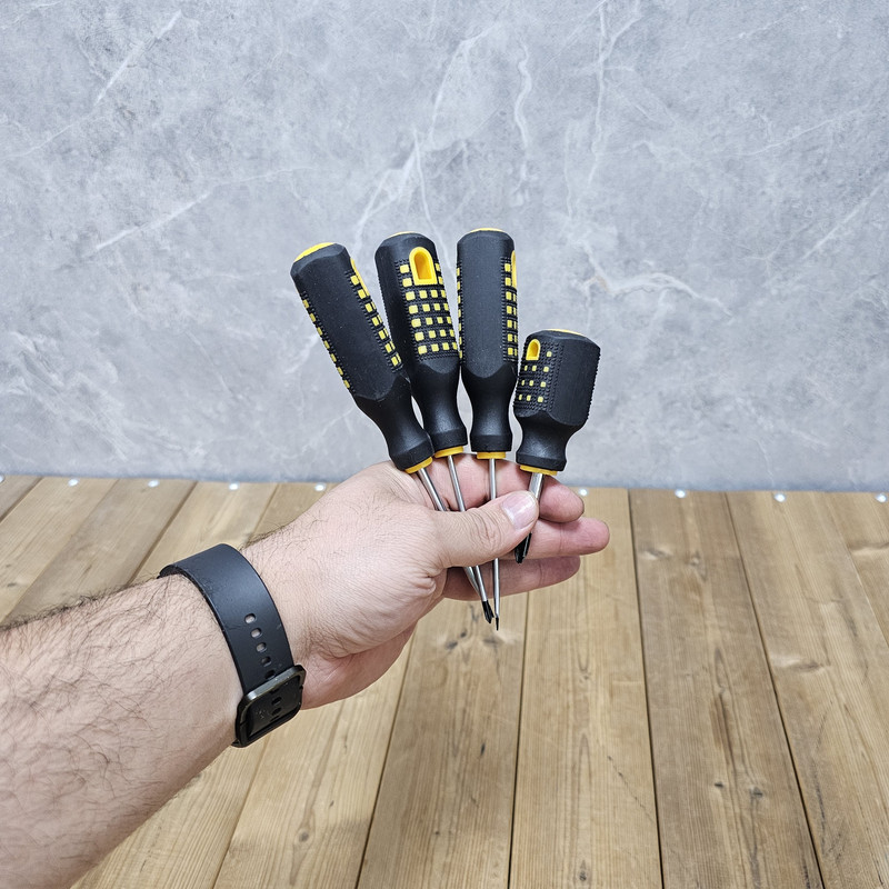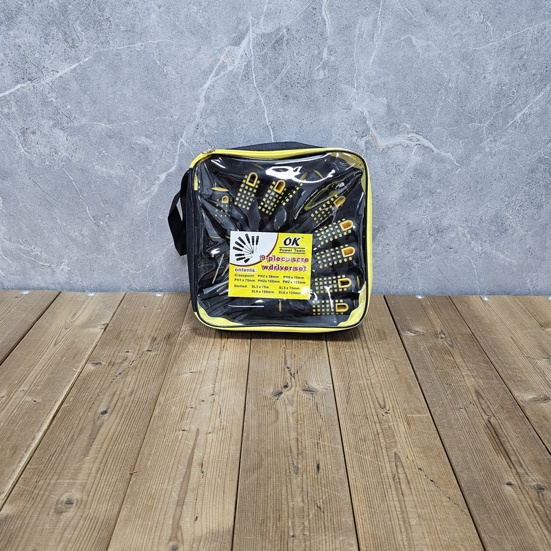 پیچگوشتی ابزاری جهت باز و بسته نمودن پیچ است. عموما پیچگوشتیها به دو صورت برقی و دستی در بازار ارائه میشود. پیچگوشتی دستی از دو قسمت دسته و میله ساخته شده است.« ست پیچگوشتی دستی OK متشکل از 9 عدد پیچگوشتی در ابعاد مختلف است تا کاربر بر اساس نیاز کاری از آن استفاده نماید. این ست دارای 4 عدد پیچگوشتی دوسو در سایزهای {SL3x75M SL5x75M SL6x100M SL6x125M} و 5 عدد پیچگوشتی چهارسو در سایزهای {PH0x75MM PH2x38MM PH1x75MM PH2x100MM PH2x125MM} هست. دسته این پیچگوشتی از پلاستیک فشرده شده استفاده شده است. به دلیل چرخش زیاد پیچگوشتی در حین کارکردن خصوصا کارکردن طولانی مدت، قسمت بالا دسته تراش داده شده تا دست خسته و یا اذیت نشود و دسته حالت ارگونومیک خود را حفظ نماید و به راحتی در دست قرار گیرد. همچنین جهت کاهش لغزش دست بر روی دسته پیچگوشتی، دسته به صورت شیار دار ساخته شده است. میله پیچگوشتی از آلیاژ کروم وانادیوم (CR-V) ساخته شده تا استحکام میله افزایش یابد. این آلیاژ در مقابل فشار، حرارت، ضربه و حرکات پیچشی مقاومت بالایی دارد. همچنین با اعمال عملیات گرمایشی استادارد بر روی میله از خورده شدن نوک پیچگوشتی جلوگیری میشود. همچنین تمام پیچگوشتیهای مارک اکتیو دارای نوک آهنربایی نیز است. میله این پیچگوشتی شش گوش هست تا از چرخش احتمالی میله پیچگوشتی در داخل دسته (در هنگام فشار زیاد به پیچگوشتی) جلوگیری میشود. همچنین میله دارای قابلیت آچارخور جهت پیچاندن میله در شرایط سخت نیز است. همچنین میله این پیچگوشتی جهت افزایش مقاومت میله دربرابر زنگ زدگی، میله با روکش ساتن کروم آبکاری شده است. داخل یک کیف مقاوم وشفاف پلاستیکی-برزنتی در اختیار مصرف کنندگان قرار میگیرد. همچنین در قسمت انتهایی این کیف نیز از برزنت استفاده شده تا کیف به راحتی پاره نشود.