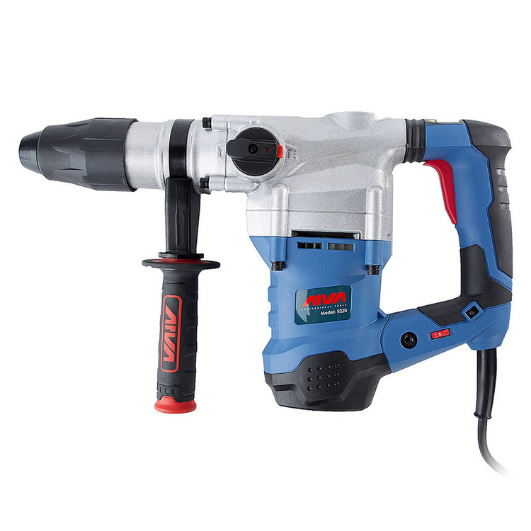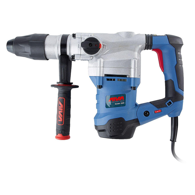 ابزاری که مشاهده میکنید، محصول شرکت «آروا» (Arva) است. این ابزار دریل بتنکن نام دارد و با مدل «5220» به بازار عرضه شده است. این دریل بهصورت ضربهای-تخریبی کار میکند و منبع تغذیهی آن برق است. اقلام همراه این دریل بتنکن عبارتاند از: کیف، زغال، قلم، مته، گریس، دستهی کمکی، دفترچهی راهنما و آچار مخصوص. وزن این ابزار 7.3 کیلوگرم و ابعاد آن 11 × 27 × 46 سانتیمتر است. موتور این محصول ضدغبار و با گشتاور بسیار بالا طراحی شده و به کلید تنظیم سرعت چرخش مجهز است. نرخ ضربهی این ابزار 9 ژول ضربه در دقیقه و توان آن 1600 وات است. ولتاژ ورودی آن 220 ولت بوده و به سیستم قلمگیر 5 شیار مجهز است. همچنین دو عدد قلم به ابعاد 320 × 18 میلیمتر در کیف این محصول وجود دارد. این بتنکن دارای قدرت بالا و سیستم ضدلرزش بوده و برای کاربرد صنعتی مناسب است.