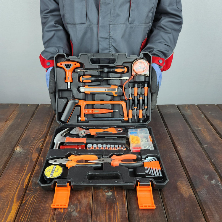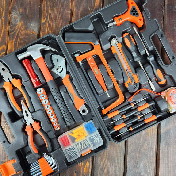 آچار فرانسه , انبر دم باریک , انبردست , پیچ , پیچ گوشتی , چراغ قوه , چراغ کار , چسب , چکش , دسته جغجغهای , رولپلاک , سری بکس , فازمتر , کاتر , کیف ابزار , متر