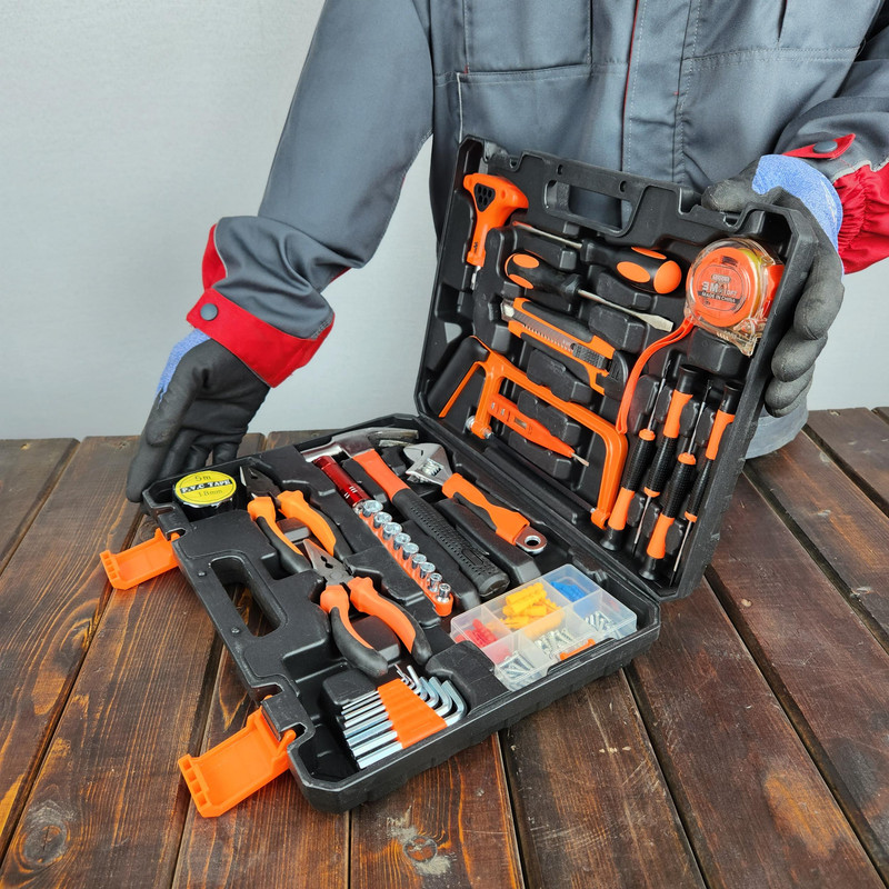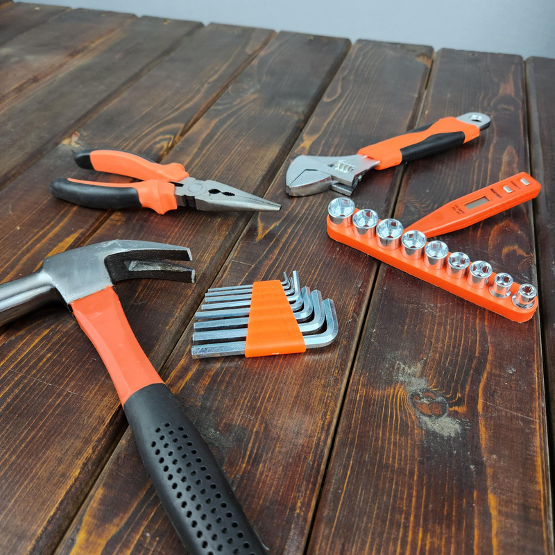 آچار فرانسه , انبر دم باریک , انبردست , پیچ , پیچ گوشتی , چراغ قوه , چراغ کار , چسب , چکش , دسته جغجغهای , رولپلاک , سری بکس , فازمتر , کاتر , کیف ابزار , متر