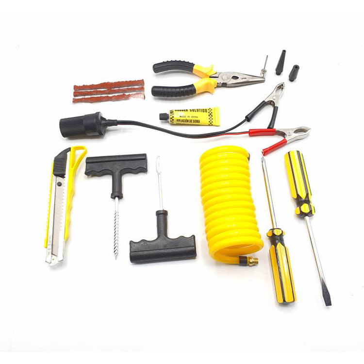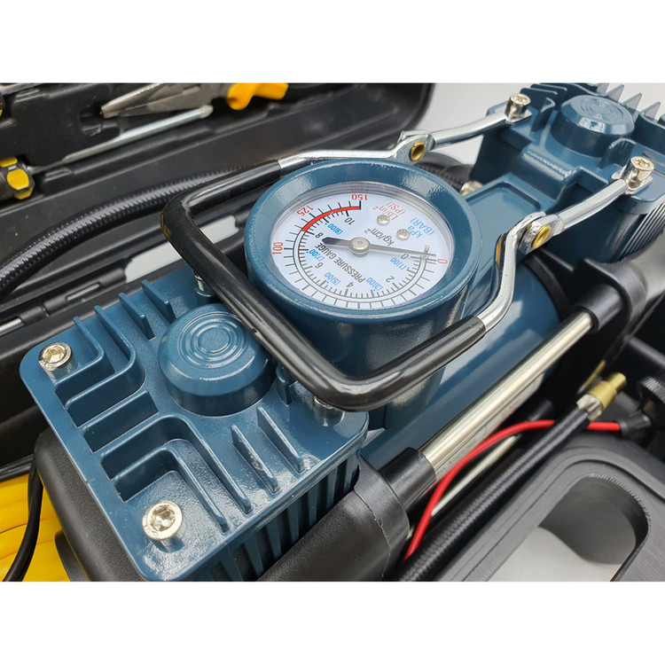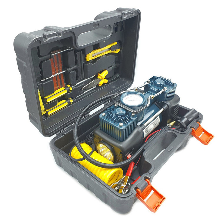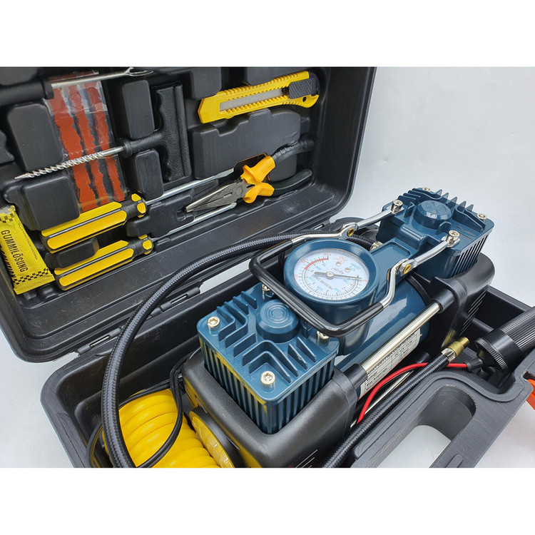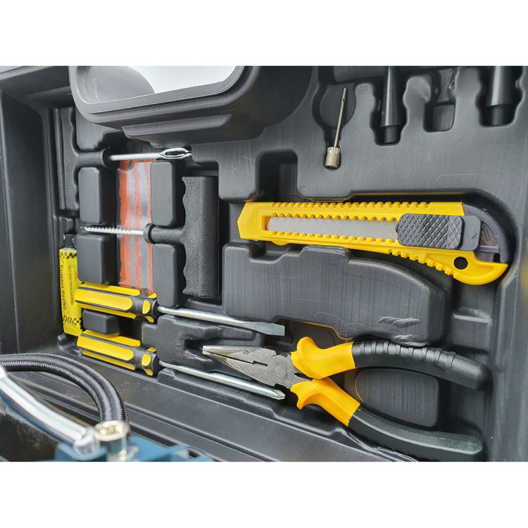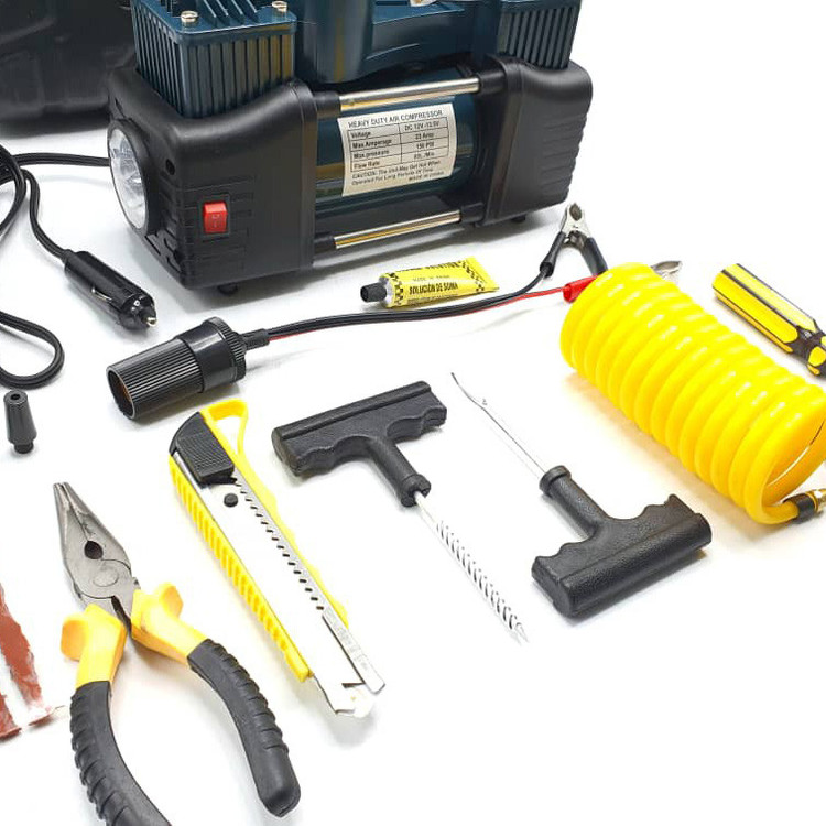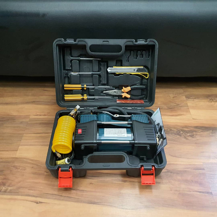 دارای متعلقات کاربردی؛ شلنگ فنری دمباریک، کاتر، انبرک های پنچر گیری، پیچ گوشتی دوسو و چهارسو، وصله پنچرگیری ، چسب پنچرگیری ، تبدیل فندکی به سر باتری خودرو، سه عدد سری (جهت باد زدن توپ، دوچرخه، قایق بادی و ...)