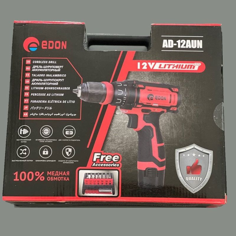 این دریل شارژی دارای دو باطری دو سرعته و سرعت گردش تا 1400 دور در دقیقه و شامل هفده حالت ترکمتر پیچ بند به همراه یک حالت سوراخکاری ودارای ال ای دی و نشانگر میزان شارژ و امکان جداسازی سه نظام و استفاده به عنوان دستگاه ایمپکت و اتصال متعلقات 6 پر ماننده نوک پیچ گوشتی می باشد .
