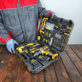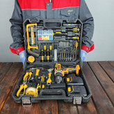 این دستگاه مجموعه ای کامل به همراه انواع ابزار الات جهت تمامی امور خانگی، اداری و ... می باشد که دریلی چکشی با سه نظام 13 میلیمتری تمام فلزی دارد که برای کارهای متعدد و سخت قابل استفاده است. گیربکس این دریل تقویت شده و بسیار قدرتمند است و از عهده امور مختلف بر میآید. این دستگاه دارای دو عدد باتری لیتیوم یون 98 ولت می باشد. دریل با گشتاور فوق العاده 35 الی 60 نیوتن متر می باشد. دارای دریل با سرعت 0 الی 600 و 0 الی 1500 دور بر دقیقه می باشد.باتری ها تولید جدید و دستگاه دارای دیمر و تنظیم سرعت می باشد. دارای چراغ جهت کار در محیط های تاریک می باشد قابلیت چپگرد و راستگرد دارد دارای کلیه ابزارهای مصرفی شامل؛ آچار فرانسه سایز 8، انبردست، دمباریک، چکش، بکس تک سایز 4 تا 13 میلیمتر، متر 3 متری، پیچ گوشتی دوسو و چهارسو سایز بزرگ، مته آهن سایز 3، 4 و 5 ، مته چوب سایز 3، 4 ،5 میلیمتر، مته برگی سایز 16 و 20 ، دارای 9 عدد نوک پیچ گوشتی، تبدیل نوک پیچ گوشتی به بکس، چسب برق، کاتر، فازمتر دیجیتال، 5 عدد تیغ کاتر، دو سایز پیچ گوشتی موبایلی دو سو و دو سایز پیچ گوشتی موبایلی چهارسو، کمان اره چوب و فلز، مجموعه سایزبندی پیچ و رولپلاک می باشدکیفیت عالی می باشد همراه کیف BMC حرفه ای عرضه میگردد