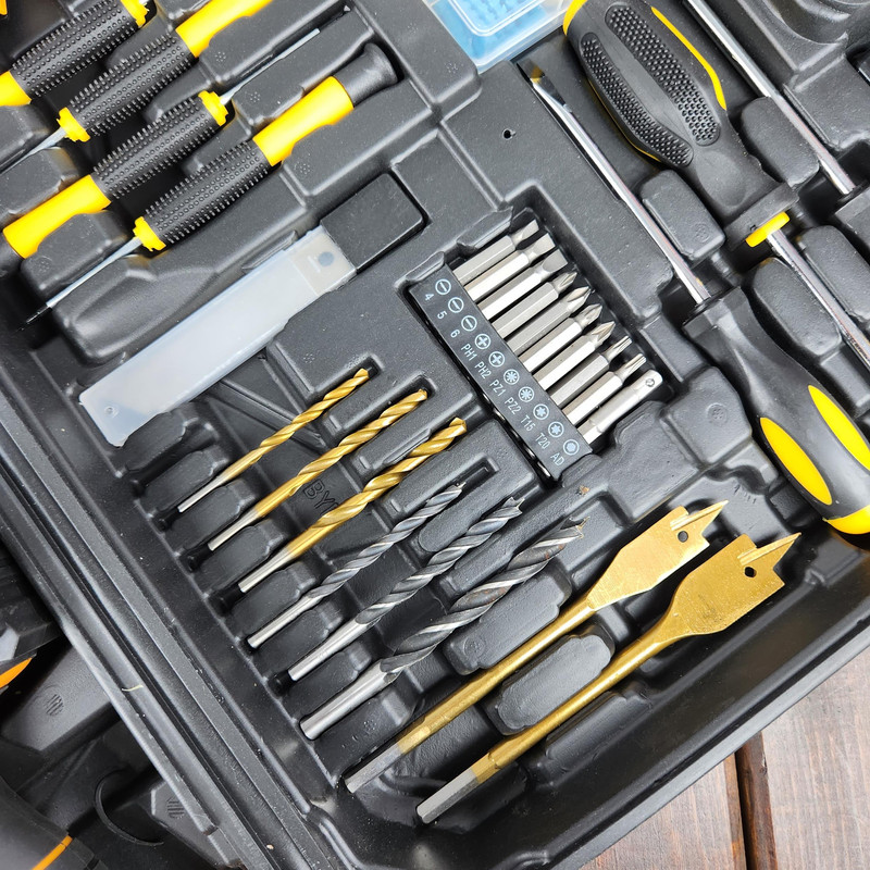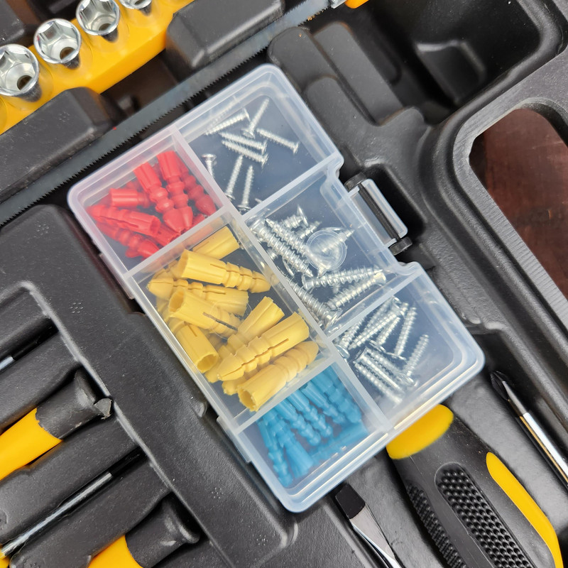 این دستگاه مجموعه ای کامل به همراه انواع ابزار الات جهت تمامی امور خانگی، اداری و ... می باشد که دریلی چکشی با سه نظام 13 میلیمتری تمام فلزی دارد که برای کارهای متعدد و سخت قابل استفاده است. گیربکس این دریل تقویت شده و بسیار قدرتمند است و از عهده امور مختلف بر میآید. این دستگاه دارای دو عدد باتری لیتیوم یون 98 ولت می باشد. دریل با گشتاور فوق العاده 35 الی 60 نیوتن متر می باشد. دارای دریل با سرعت 0 الی 600 و 0 الی 1500 دور بر دقیقه می باشد.باتری ها تولید جدید و دستگاه دارای دیمر و تنظیم سرعت می باشد. دارای چراغ جهت کار در محیط های تاریک می باشد قابلیت چپگرد و راستگرد دارد دارای کلیه ابزارهای مصرفی شامل؛ آچار فرانسه سایز 8، انبردست، دمباریک، چکش، بکس تک سایز 4 تا 13 میلیمتر، متر 3 متری، پیچ گوشتی دوسو و چهارسو سایز بزرگ، مته آهن سایز 3، 4 و 5 ، مته چوب سایز 3، 4 ،5 میلیمتر، مته برگی سایز 16 و 20 ، دارای 9 عدد نوک پیچ گوشتی، تبدیل نوک پیچ گوشتی به بکس، چسب برق، کاتر، فازمتر دیجیتال، 5 عدد تیغ کاتر، دو سایز پیچ گوشتی موبایلی دو سو و دو سایز پیچ گوشتی موبایلی چهارسو، کمان اره چوب و فلز، مجموعه سایزبندی پیچ و رولپلاک می باشدکیفیت عالی می باشد همراه کیف BMC حرفه ای عرضه میگردد